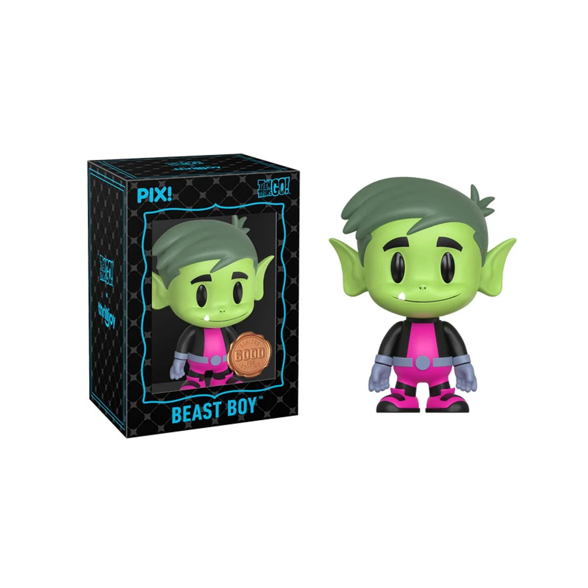 This limited-edition ThrillJoy Teen Titans Go! Beast Boy Pix! Vinyl Figure comes with a 48-piece super-rare chase that features a smiling variant of Cyborg! All Teen Titans Go! PIX! comes with a Certificate of Authenticity in the form of a laser printed, spot varnished collector's card, and are ready to hang on your wall or stack with the rest of your collection. Each collectible has a 1-of-6 odds of a chase! Add Beast Boy to your Teen Titans Go! collection today - and let the fun begin! For ages 15 years and up.